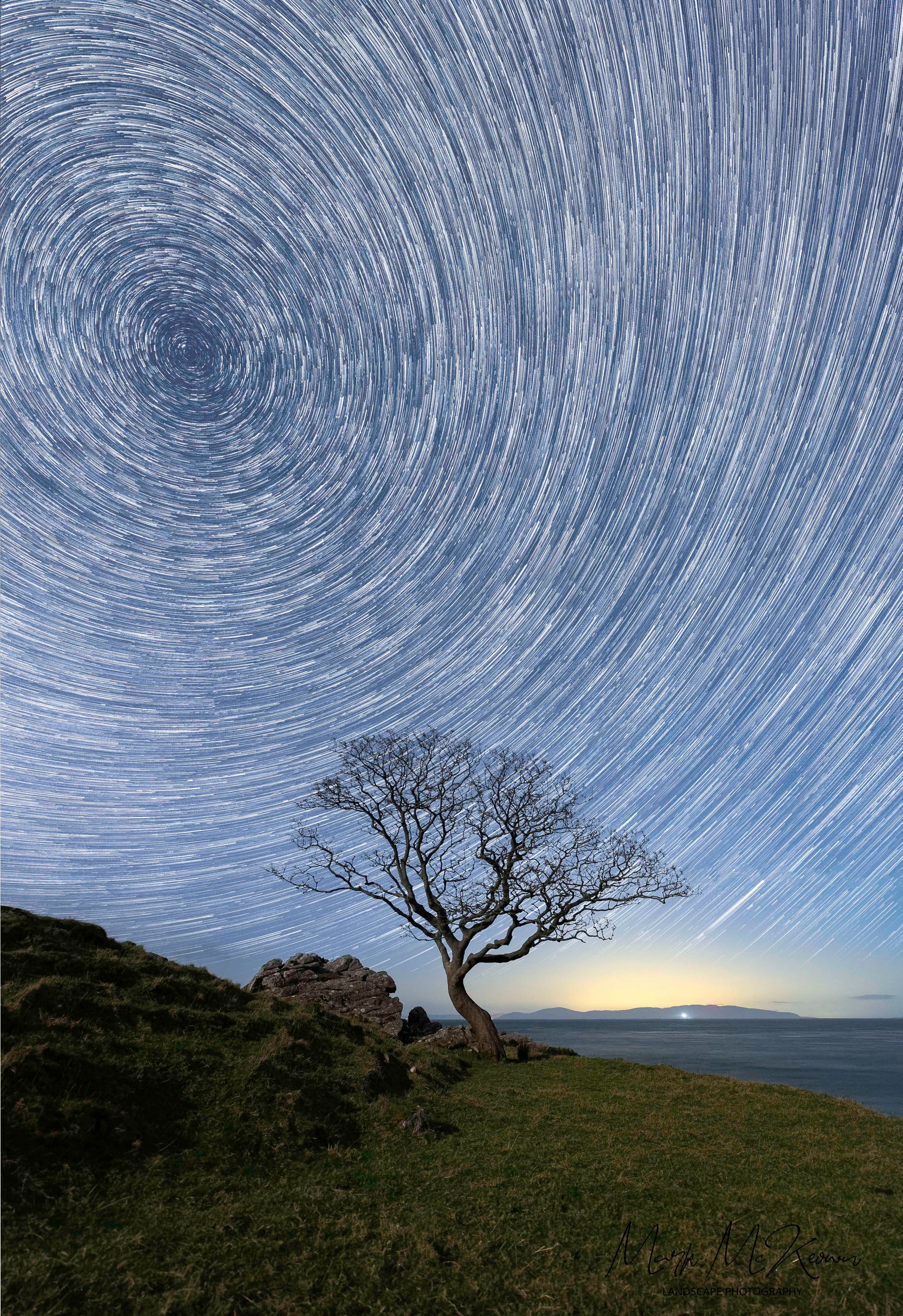 This captivating image captures the essence of solitude and wonder, as the lone tree becomes a focal point in a world that feels both vast and intimate. The star trails, formed by the Earth's rotation, weave a tapestry of light that dances around the tree, illuminating its bark and leaves with a soft, ethereal glow. Each star seems to tell a story, whispering secrets of the universe to those who take a moment to gaze upward. The interplay of light and shadow creates a magical atmosphere, evoking feelings of peace and contemplation, as if the tree is a guardian of the night, standing watch over the dreams of all who pass by.